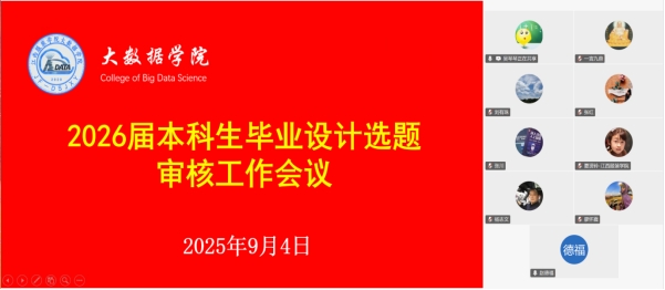【402cc永利官网讯】毕业设计作为本科生人才培养的关键环节,是检验学生专业知识应用能力、衔接校园学习与职场实践的重要纽带。为切实保障2026届本科生毕业设计选题质量,确保选题既符合学术规范又能精准对接产业需求,402cc永利官网于2025年9月4日至9月5日分阶段召开线上专题审核会议。402cc永利官网院长徐照兴、副院长赵德福全程统筹指导,各专业负责人及骨干教师组成选题审核组,针对三个专业提交的348个选题展开“全覆盖、精细化、高标准” 的审核工作,为后续毕业设计顺利推进筑牢基础。