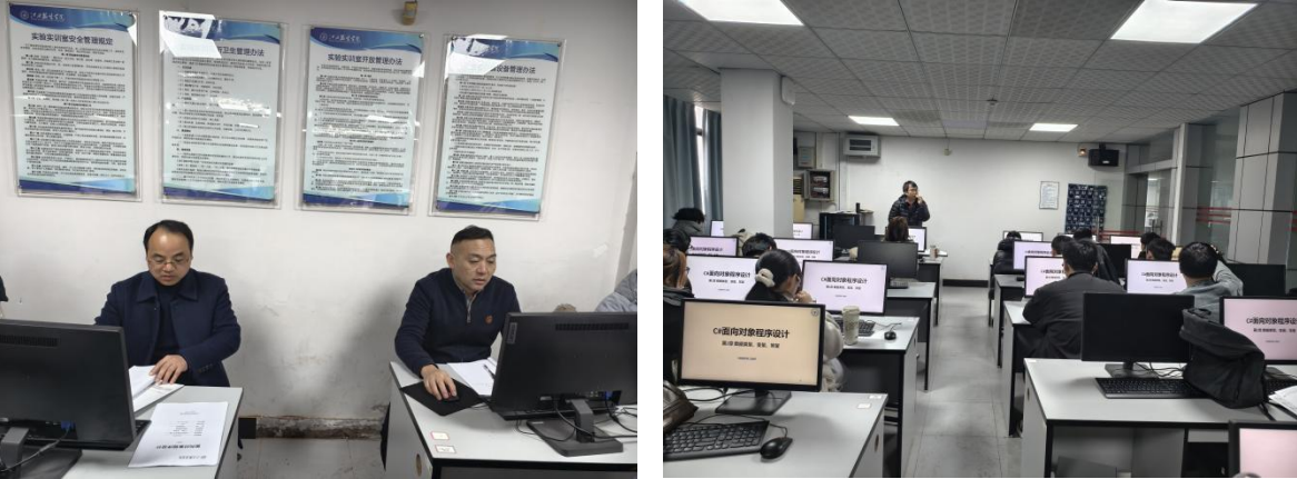 巡课期间,校党委副书记、纪委书记、副校长李宝君教授,402cc永利官网院长徐照兴教授走进东2栋705实验室,现场聆听了王继环博士讲授的《面向对象程序设计》课程。李宝君教授对王继环博士的课程设计、教学思路及课堂把控能力给予充分肯定与高度评价。