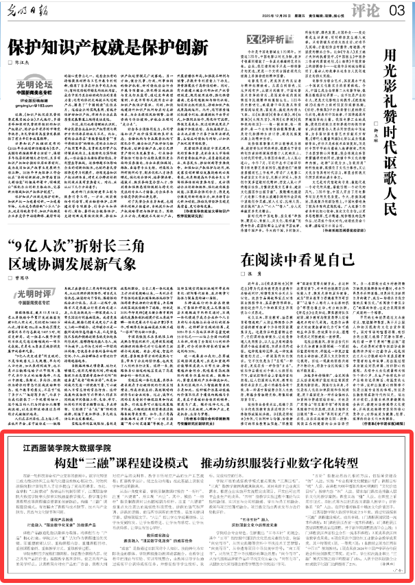 《光明日报》刊登402cc永利官网教育教学改革成果《构建“三融”课程建设模式 推动纺织服装行业数字化转型》