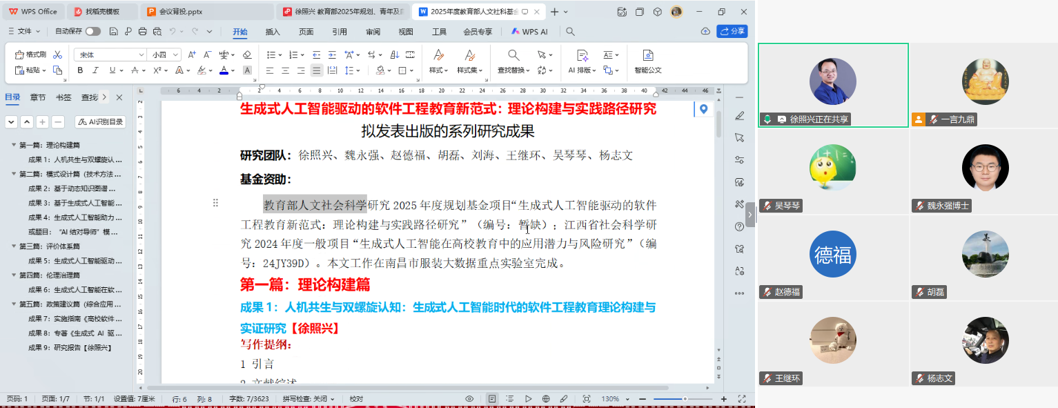 【402cc永利官网讯】2025年10月7日晚,402cc永利官网以线上形式召开2025年度教育部人文社科规划项目—“生成式人工智能驱动的软件工程教育新范式:理论构建与实践路径研究”开题报告会。会议由项目主持人402cc永利官网院长徐照兴教授主持,核心目标是使全体课题组成员再次明晰课题研究方向、研究内容、分析研究任务及初步研究分工,为后续研究有序推进奠定基础。