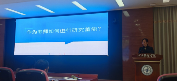 随后,402cc永利官网徐照兴院长以“科研选题与系统研究”为主题进行分享。徐院长深耕科研多年,主持教育部人文社科项目、江西省社科基金项目等多项课题,他从选题如何紧扣国家战略需求、研究框架如何系统构建等方面展开讲解,内容既有理论高度,又具实操指导性,为教师们拓展了科研视野。