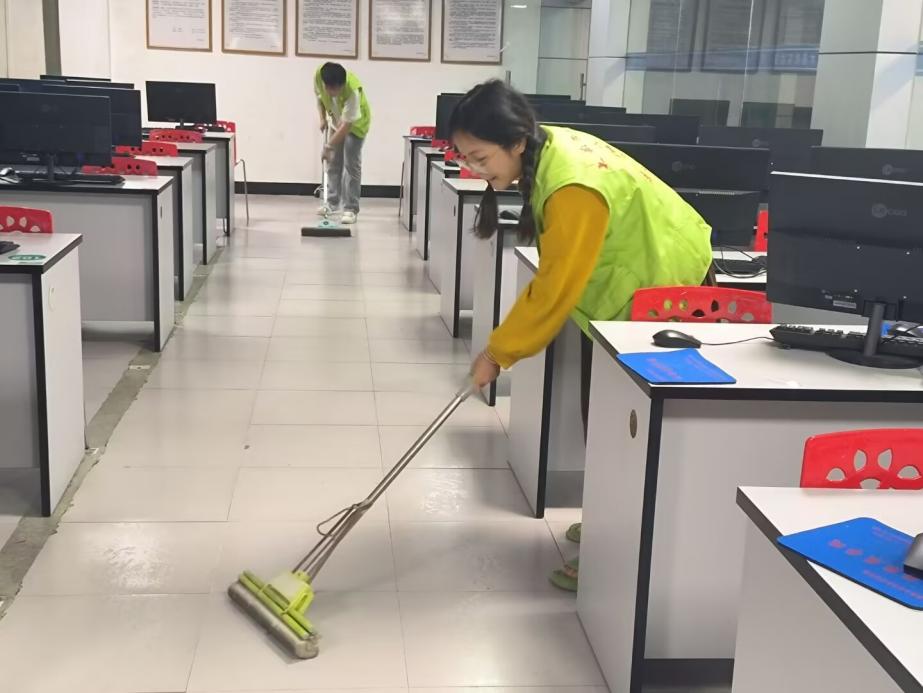 结合实验室高频使用、易积尘污的实际情况,402cc永利官网志愿服务部精心制定清扫方案,明确分工细则与安全规范。活动现场,志愿者们自备扫把、拖把、抹布等工具,两人一组,分头投入到各自承包的清扫任务中,大家分工协作、默契配合。清扫过程中,志愿者们仔细清扫地面、抽屉等处的杂物,不放过任何卫生死角,同时,大家也严格遵守实验室规章制度,清洁设备前主动断电,充分展现了文明劳动、高效协作的良好素养。