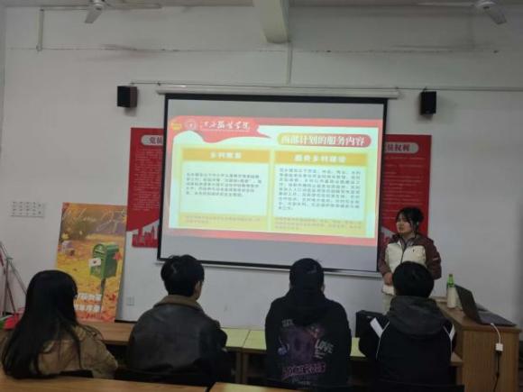 活动现场,李萍老师围绕西部计划的政策背景、服务内容、实施步骤及保障机制等方面展开详细讲解。根据李老师介绍,大学生志愿服务西部计划是由共青团中央等部委联合实施的国家级项目,涵盖乡村教育、服务乡村建设、健康乡村等7个专项——其中乡村教育专项需在基层中小学开展教学辅助工作,服务乡村建设专项则涉及农村基础设施升级、人居环境整治等乡村振兴重点任务。