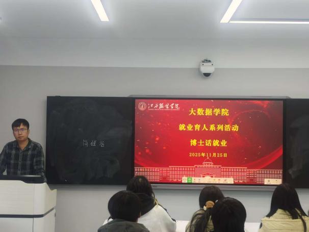 【402cc永利官网讯】2025年11月25日下午15:00,版权所有:402cc永利集团(CHINA)官方网站-Licensed by Macau在主教楼316教室开展以“博士话就业”为主题的就业指导讲座,旨在让学生明晰AI时代下就业市场的趋势,更好选择自身职业路径、适应市场变化。402cc永利官网王继环、张川两位博士分别为同学们带来行业干货,在现场以数据、案例与实操方案构建起就业指引体系。