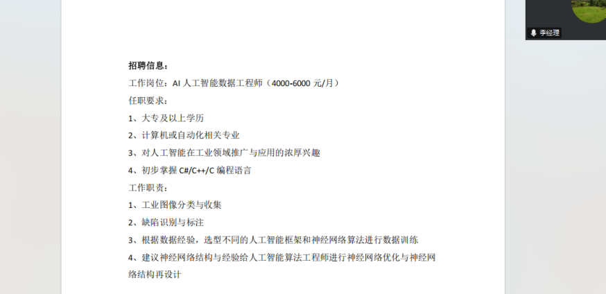 在岗位详情介绍环节,李经理逐一解读各岗位的工作职责与任职要求。以人工智能算法工程师岗位为例,要求应聘者具备人工智能及相关领域的研究兴趣,掌握Python等编程语言;软件开发工程师岗位则侧重考察计算机自动化专业功底与项目实践经验,但胜任工作的核心在于具备良好的沟通与团队协作意识。此外,人事经理还介绍了公司的薪酬福利、晋升机制及员工培养体系,让同学们对企业的人才发展环境有了全面了解。