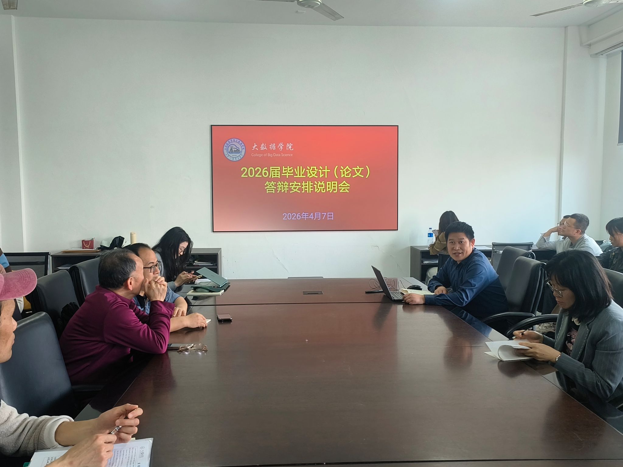 【402cc永利官网讯】为规范2026届本科毕业设计答辩流程、明确职责要求、保障答辩工作高质量推进,4月7日下午13:30,402cc永利官网在主教楼246教室召开2026届本科毕业设计答辩工作部署会。402cc永利官网领导、学工办主任、全体毕业设计指导教师及相关答辩教师参会。